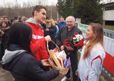 Niezwykle gorące i przede wszystkim spontanicznie powitanie zgotowali uczniowie Szkoły Mistrzostwa Sportowego im. Żywieckich Habsburgów w Żywcu mistrzyni Europy juniorek w łucznictwie bloczkowym w hali – Mariji Szkolnej, zawodnicze Łucznika Żywiec.